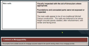 另一個更有效的方法就是找 Chartered Surveyor 做 Survey Report,自然一清二楚。在蘇格蘭有先天性的優勢,因為法例規定在賣買物業時,賣方需先聘請測量師做 Home Report 以供準買家參考,裡面會列明檢查結果、物業類型、是否 Standard 或 Non Standard Construction,以及「對作按偈的可能性之評價」(Comment on Mortgageability)──此項會列明該物業是否適合借貸。